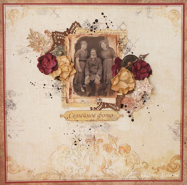 По заданию я сделала винтажную страничку. На фотографии мой прадедушка, моя бабушка (слева) и ее сестра.