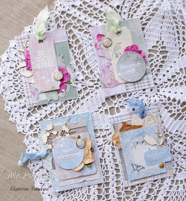 Я сделала АТС из разных коллекций Mr.Painter - "Цветочный" , "Однажды зимой", "Дед и мишка в припрыжку", "Праздник детства". Очень люблю АТС. Мне кажется, что даже в таком маленьком формате получилось показать настроение каждой из коллекций!